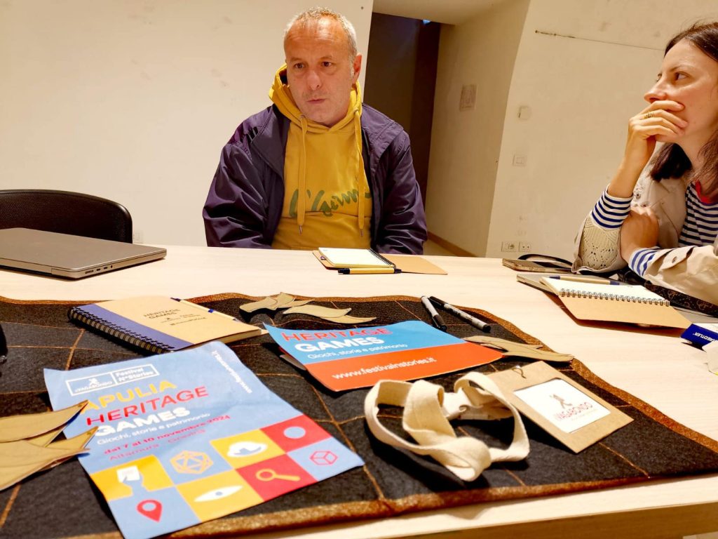 Dal 7 al 10 novembre, Davide è stato instancabile: ha condotto un laboratorio dedicato alla creazione di giochi ispirati ai temi del Geoparco, ha partecipato a un talk sui giochi urbani e ha portato in scena a Gravina una nuova versione del gioco: Poema Urbano.