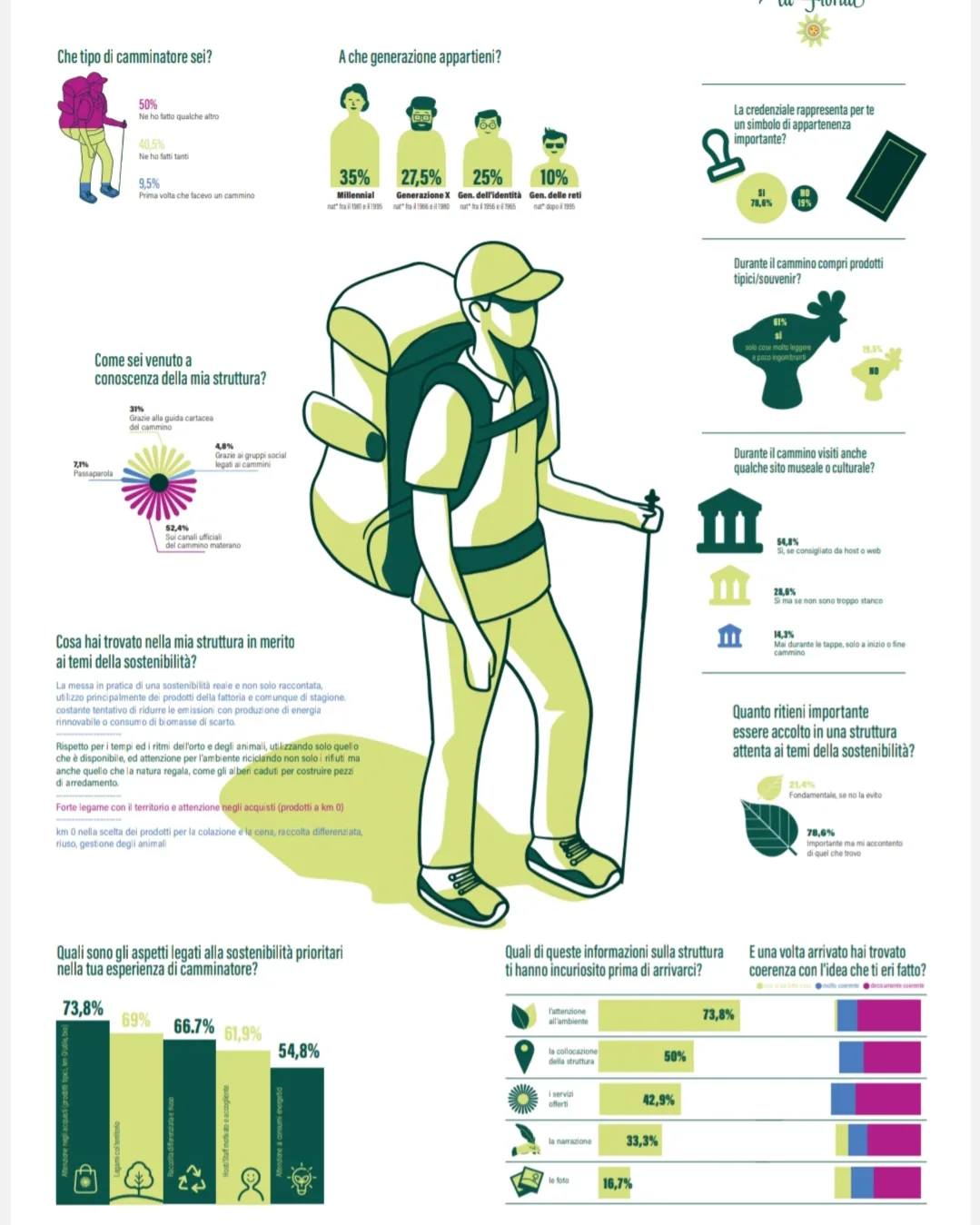 Il nostro obiettivo è trasformare i numeri in strumenti vivi e narrativi: dati con un’anima, che raccontano i valori della struttura ricettiva, l’esperienza dei camminatori e le caratteristiche del territorio.